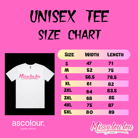 Premium unisex tee, made with 100% cotton, these are printed on Ascolour Staple tee's and are by the far the best quality tees around. Longer in length.